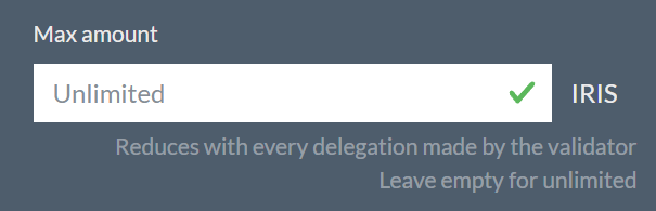 * Enter the amount of IRIS you wish to stake and click “Stake” again.