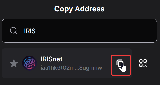 * Copy the IRIS address from Keplr and paste it into the platform where your IRIS tokens are located to transfer them.